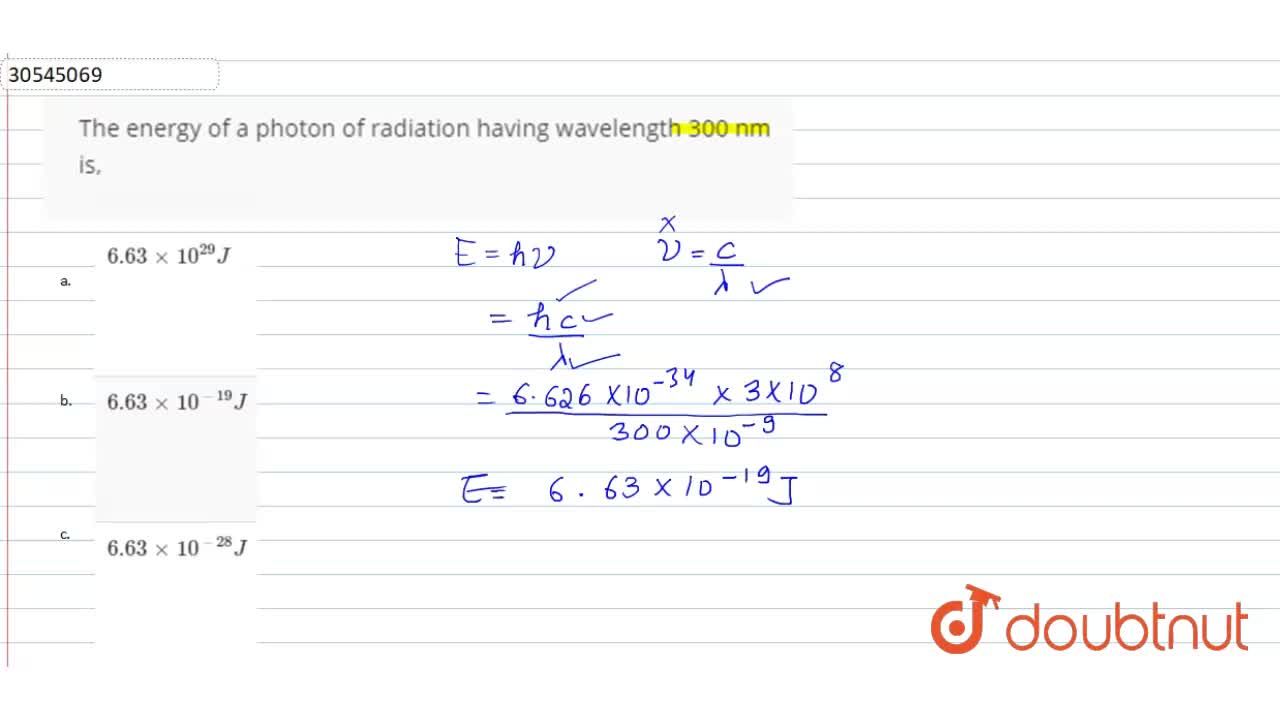 The Energy Of A Photon Of Radiation Having Wavelength 300 Nm Is